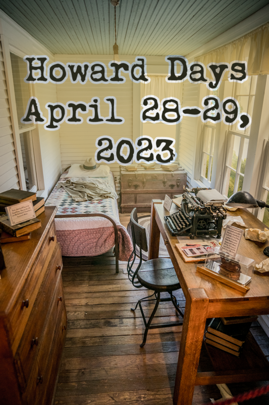 Howard Days 2023 will be held April 28-29. After considerable discussion, polling, and debate, Project Pride of Cross Plains and The Robert E. Howard Foundation is pleased to announce the dates for Robert E. Howard Days 2023: April 28 & 29. The main reason for the date change from June is due to the furnace-like […]